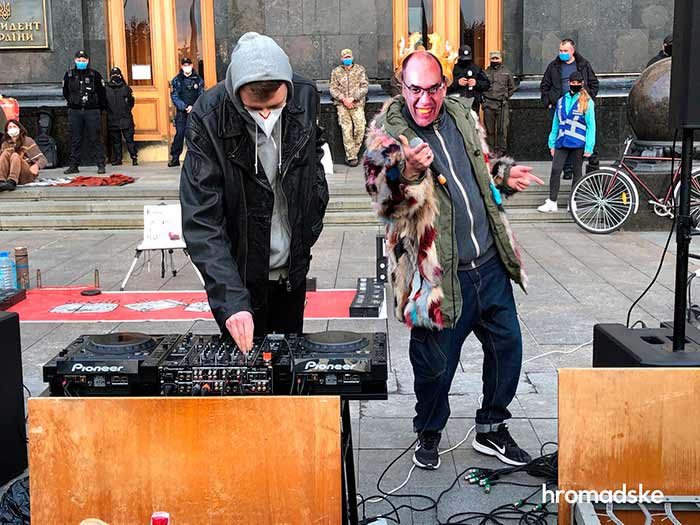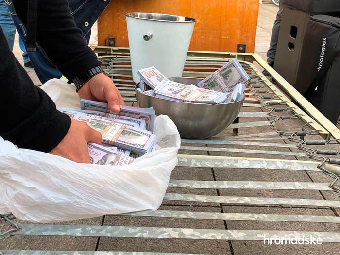 Под Офисом Президента в Киеве проходит акция с фальшивыми деньгами